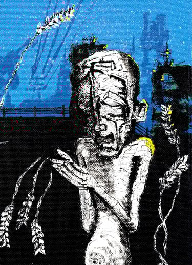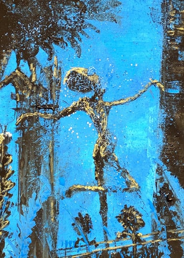 Denne serien er malt på baksiden av gamle 60-talls huntonittplater fra stuen til Pål. Platene er behandlet med gesso, og dekket med akrylmaling og blekk .